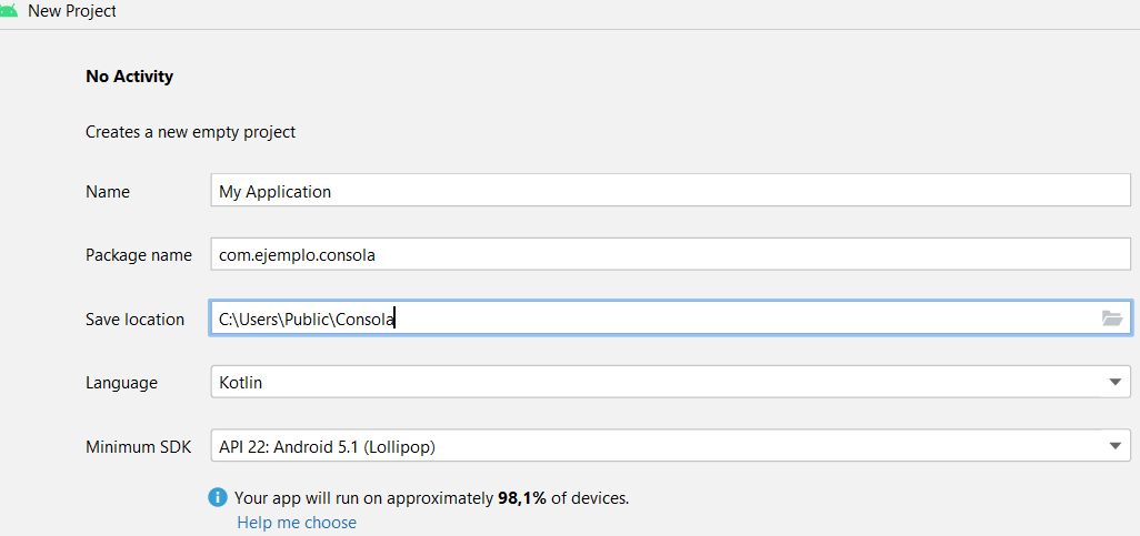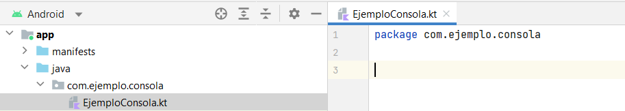 Creamos la carpeta o wrkspace, por ejemplo, _proyecto_consola_kotlin.