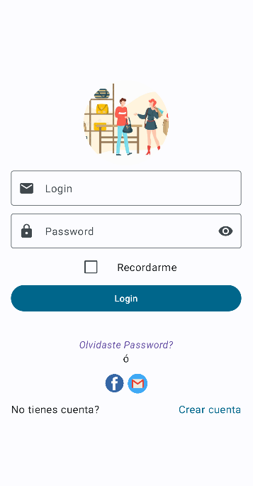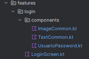 Vamos a crear una aplicación con aspecto similar al siguiente, usaremos los TexField explicados en el tema con el tipo Validacion, si no queremos crear un TextField propio para el password que permita visualizar o no la contraseña (será sencillo encontrarlo en la web), podemos usar los componentes que se proporcionan en la librería que proporcionan los profesores y que está localizada en github.pmdmiesbalmis.components. La pantalla de la imagen, la crearemos a partir de la función LoginScreen que deberemos situar en el lugar correcto, según la arquitectura explicada en temas anteriores.